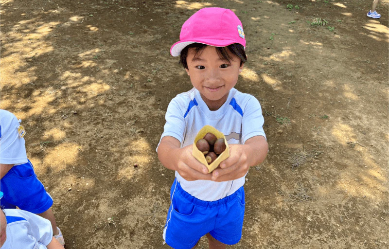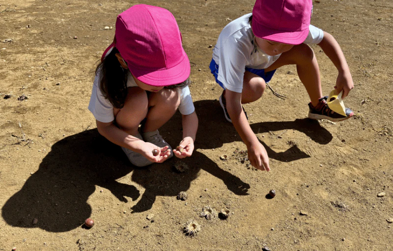 まるまるとした大きなくぬぎのどんぐり。みんな袋やポケットにいっぱい詰めて嬉しそうです😊