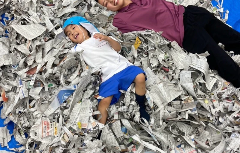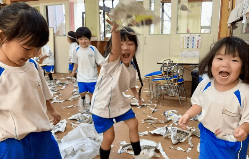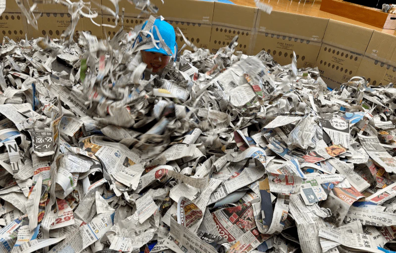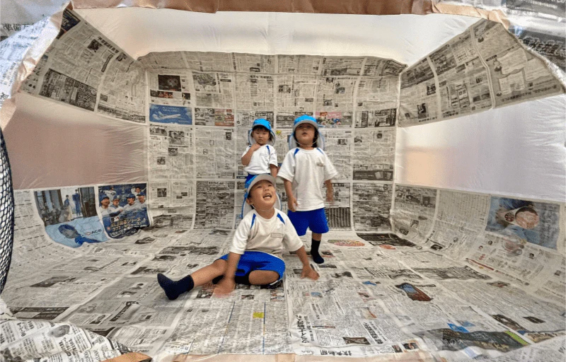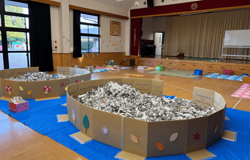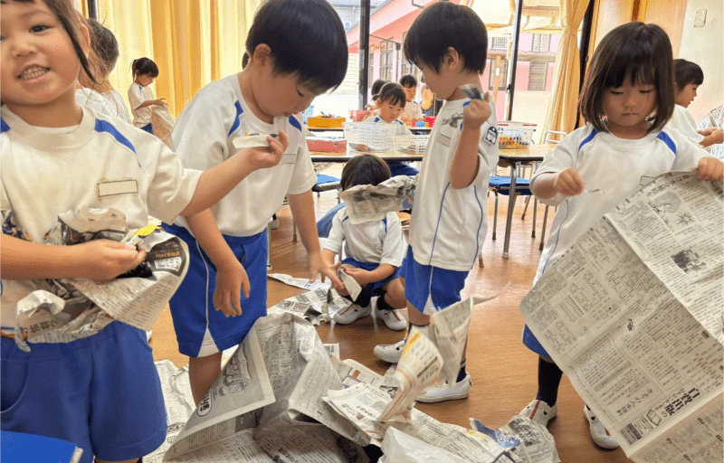 新聞紙は年少さん~年長さんまで、たくさんの子ども達が遊びながら手伝ってくれたものです!