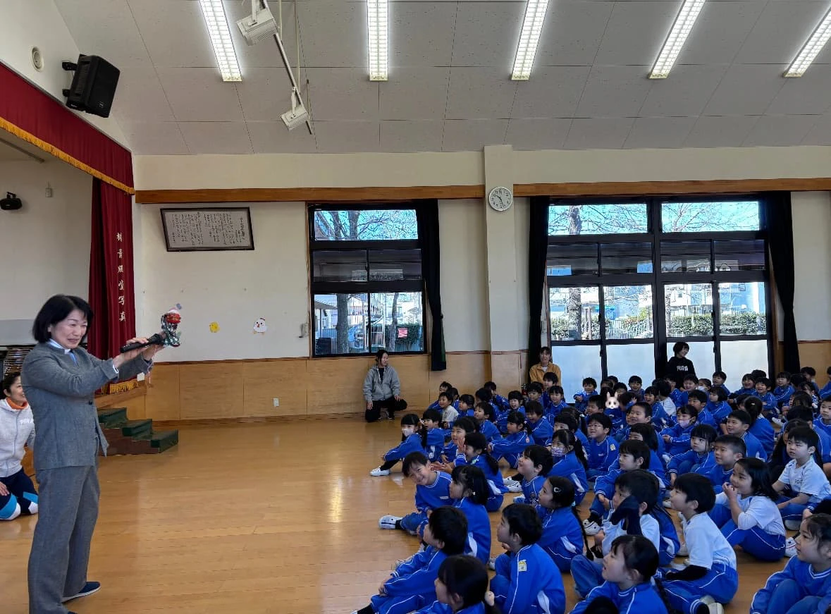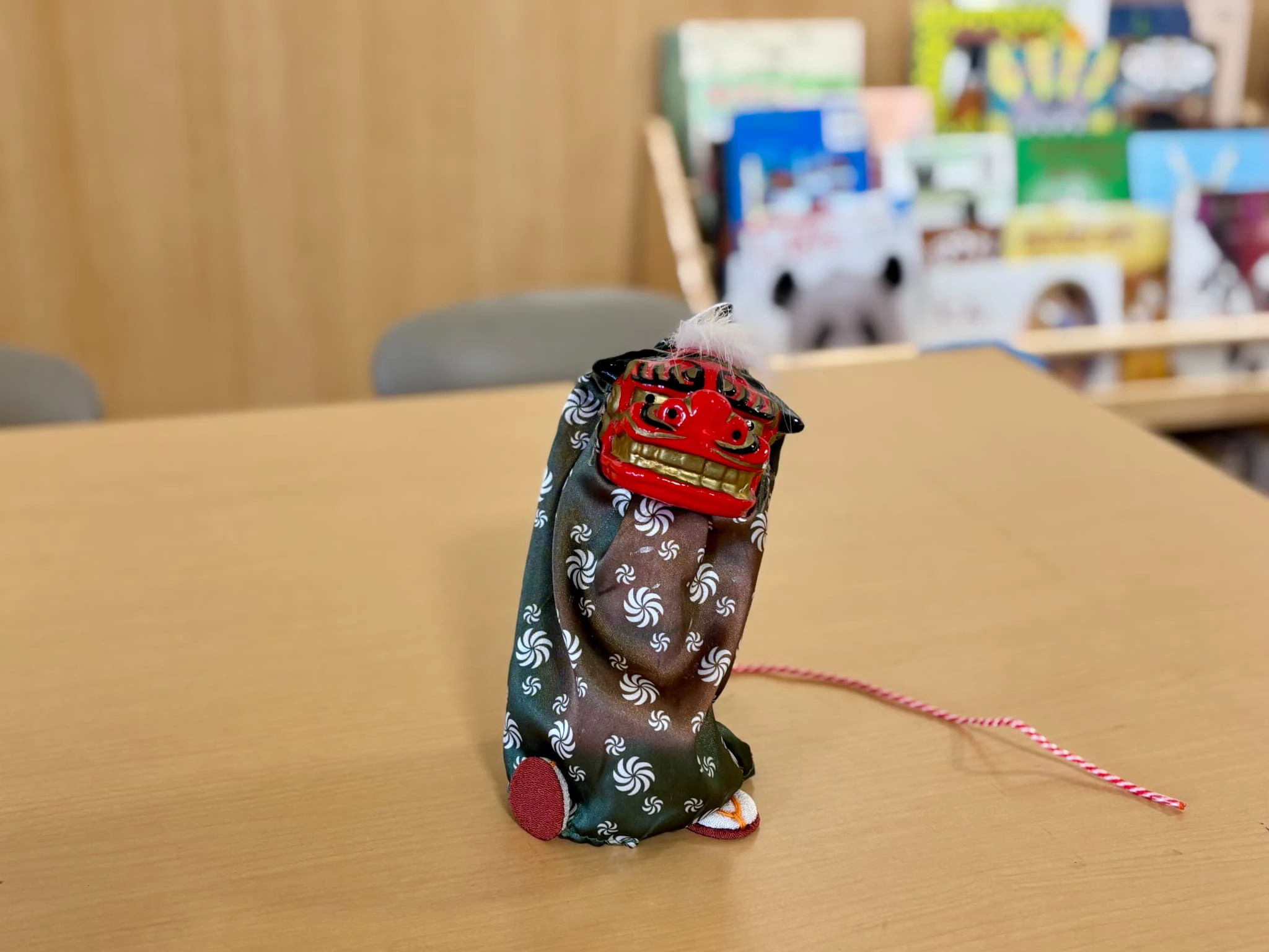 スイッチを押すと音楽とともに踊りだす獅子舞にみんな興味深々!🎵
