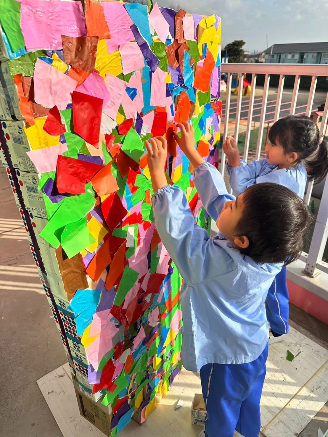 「ここはぼくがやったよ」「〇〇ちゃんと一緒に作ったんだよ!」と、作品を前に嬉しそうに話す姿がとても印象的でした。