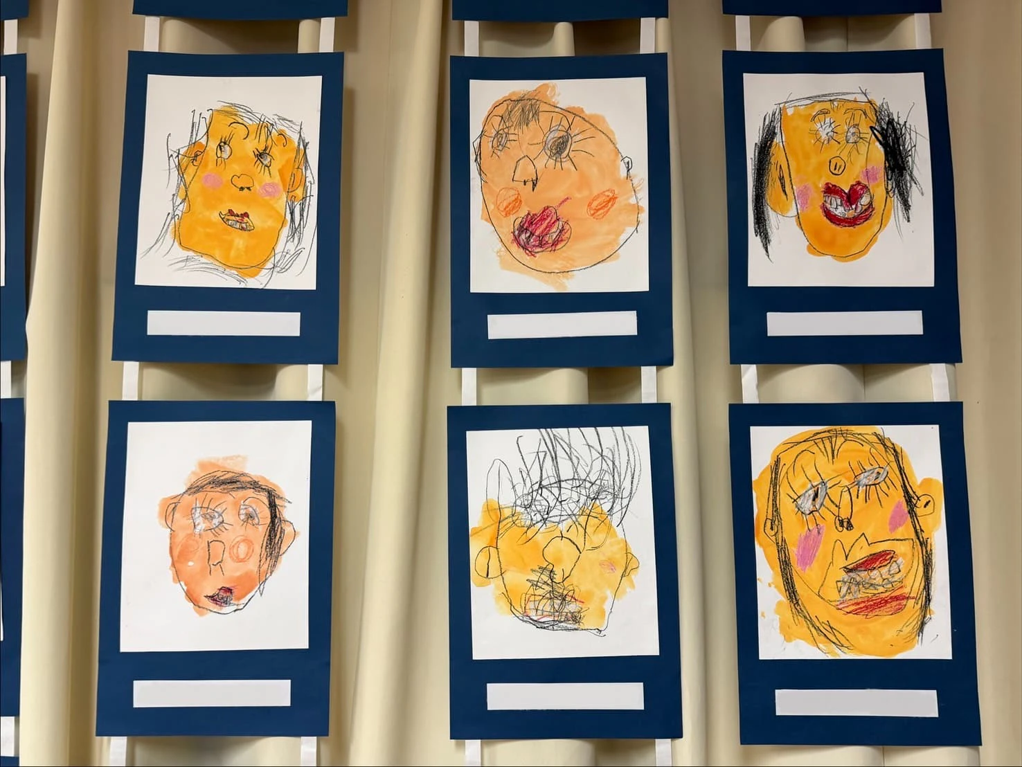 自分の顔をじっくり観察し、部位が分かり、クレヨンの下書きから絵の具の色付けまで、時間をかけて丁寧に取り組めるようになりました。