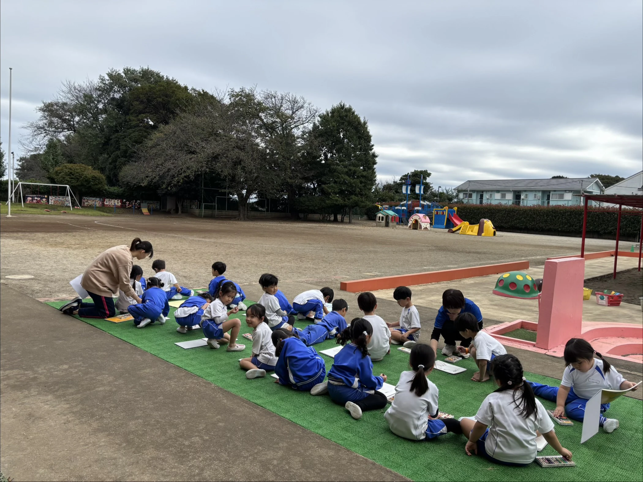 実際に桜の木を遠くから、近くから、木の下から観察し、見たり、触ったりして感じたことを友だちと伝え合う姿が見られました。